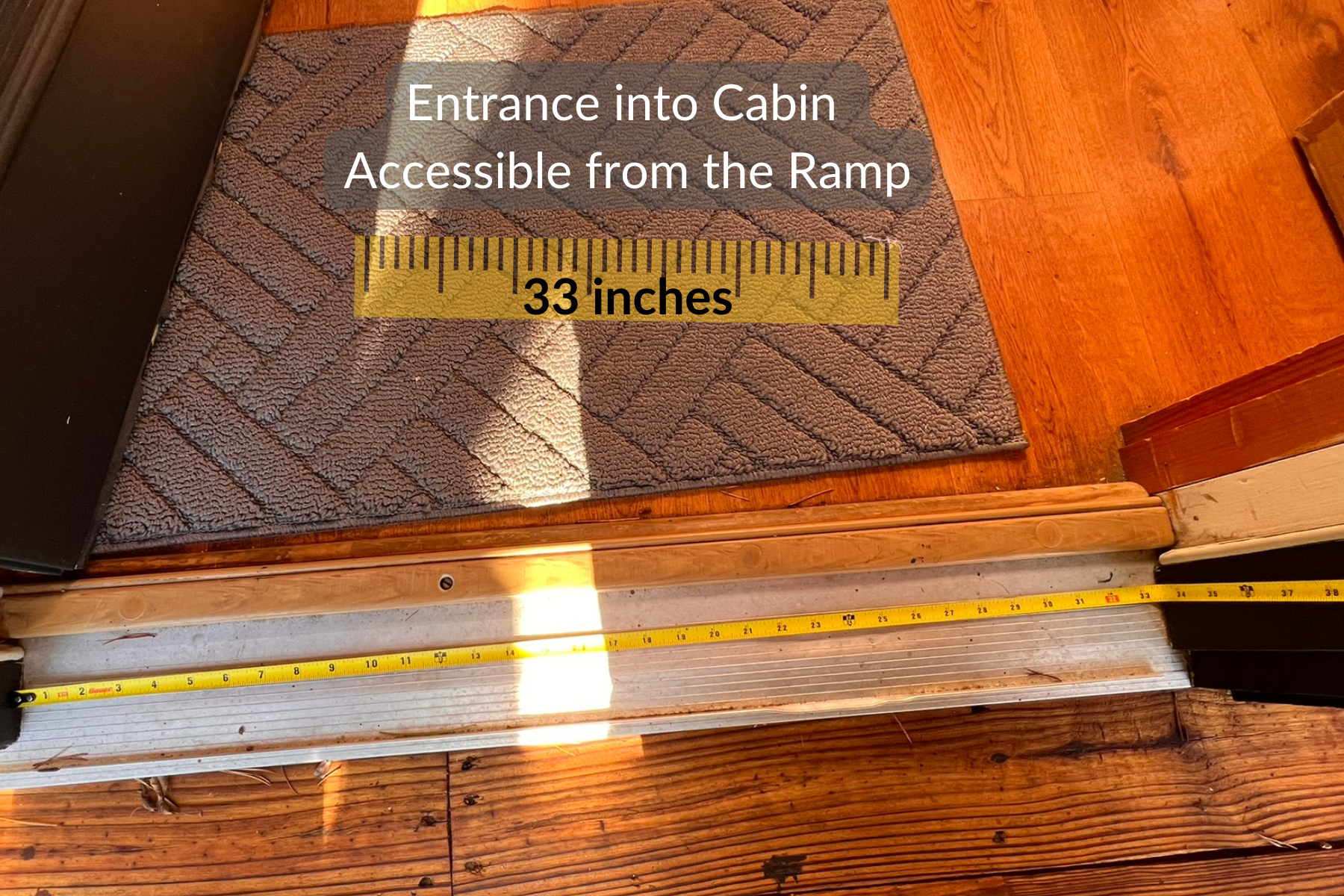☀ Accessible ramp into step-free side entrance of the cabin with 33 inch doorway