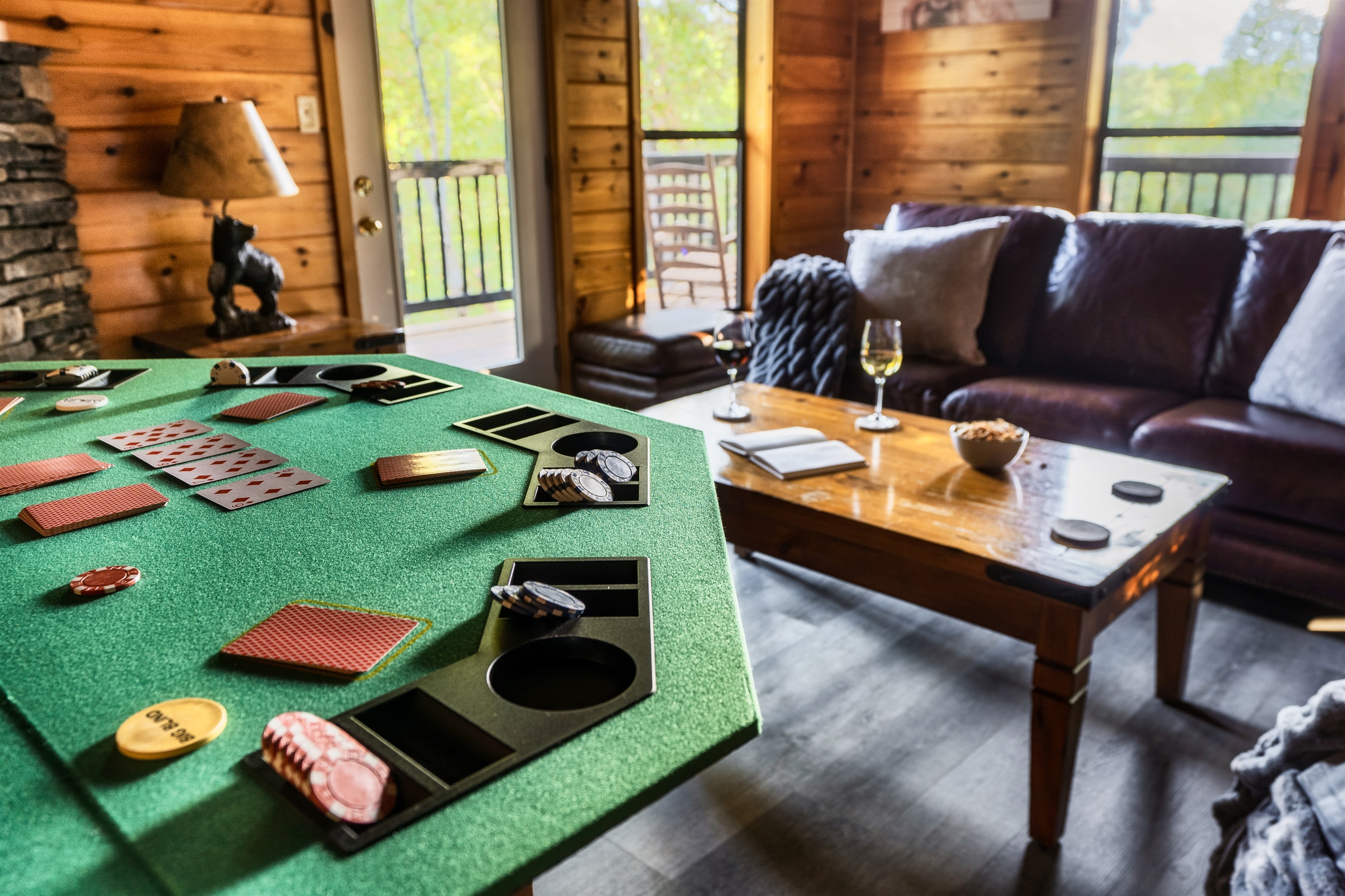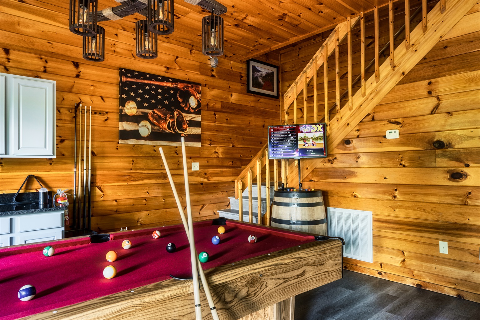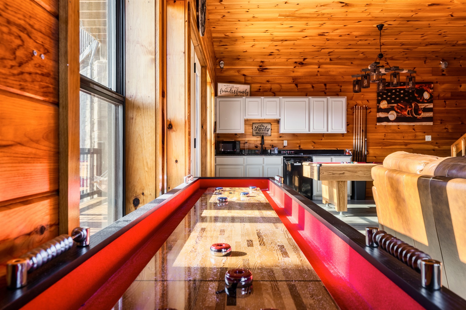 ☀ Game room with shuffle board, pool table, poker table, barrel arcade and classic board games
